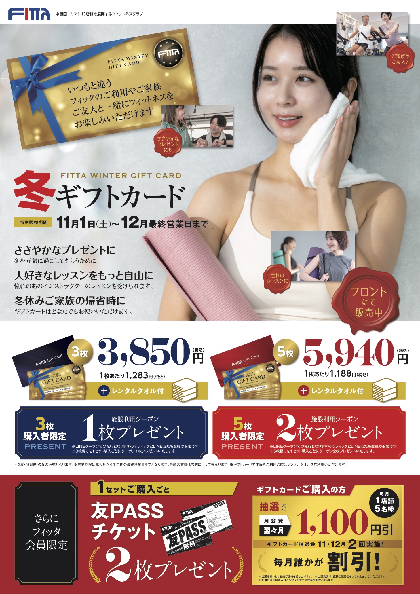 「歳暮期間限定」フィッタギフトカード販売中!12月最終営業日まで!!